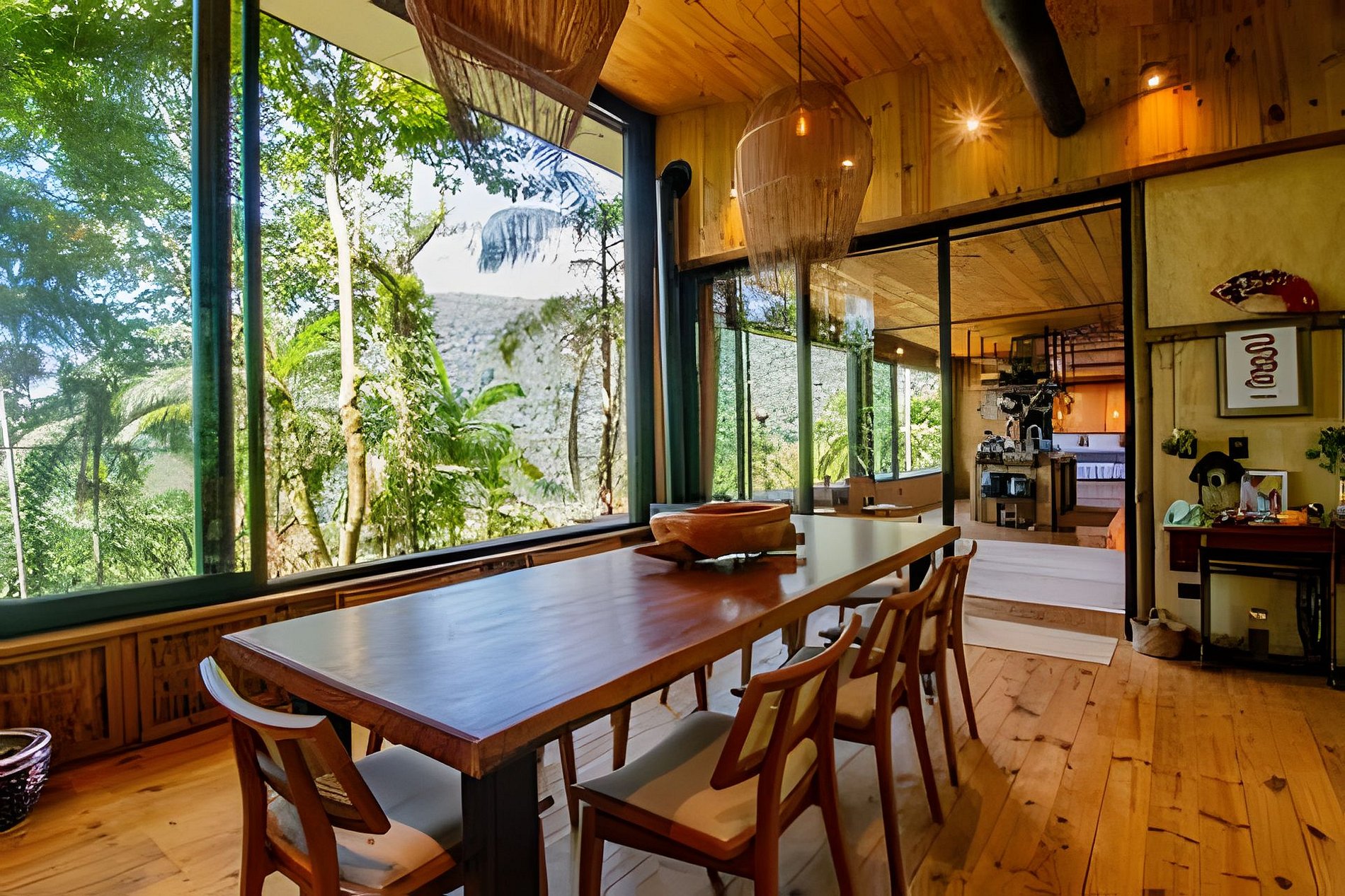 Nossa propriedade está localizada em um bairro pequeno e muito tranquilo nas montanhas de Paraty, bem na divisa com o 'Parque Nacional da Serra da Bocaina', uma das maiores áreas de preservação de Mata Atlântica do país. Há uma comunidade local incrível que vive ao redor da nossa propriedade e eles são sempre muito acolhedores. Para comprar alimentos e suprimentos, você pode dirigir 10 minutos até um supermercado próximo. A uma curta distância a pé, você pode visitar o antigo 'Caminho do Ouro', por onde todo o minério e ouro passava a caminho de Portugal quando o Brasil ainda era uma colônia. Existem mais de 2000 espécies de aves e você provavelmente poderá avistar, do deque da casa, os pássaros mais lindos que você já viu na vida. Se tiver sorte, você pode até avistar macacos e outros animais selvagens.