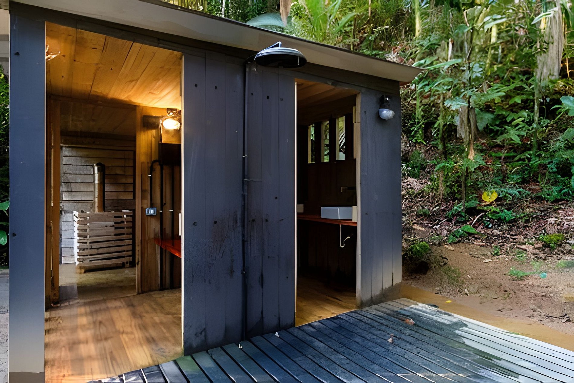 A Aldeia Rizoma fica nas montanhas de Paraty, na Estrada Paraty-Cunha, a cerca de 15 minutos do centro histórico. Os hóspedes têm acesso à casa e às áreas comuns da Aldeia, como academia, cachoeiras com piscinas naturais, trilhas, agrofloresta e sauna (taxa não incluída). Também há experiências terapêuticas, ecológicas e astronômicas opcionais. A propriedade, em condomínio privativo, oferece conforto e segurança em meio à natureza. (A casa está na Mata Atlântica — podem haver animais silvestres e peçonhentos. Caminhe com atenção, mantenha cães na coleira e use calçado fechado e lanterna à noite.)