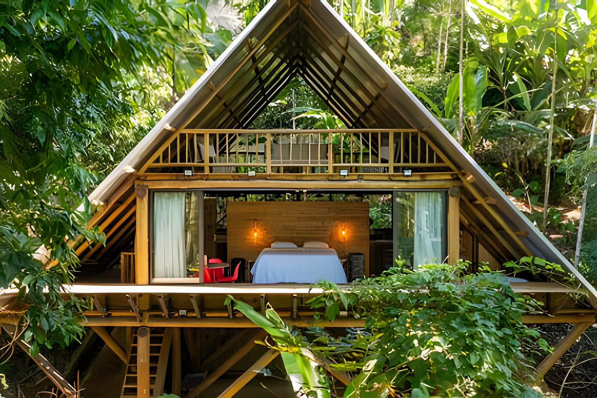 Esta casa nova está localizada acima das árvores dentro da Aldeia Rizoma, uma propriedade localizadaa 15 minutos do centro histórico da cidade. A propriedade oferece uma academia ao ar livre, sauna (paga à parte), trilhas privadas e acesso a 5 cachoeiras privadas. O estúdio de um quarto possui uma cama king size, uma banheira de hidromassagem privada e uma cozinha totalmente equipada. Há uma cama extra que pode ser usada por uma terceira pessoa, com uma taxa adicional por noite.