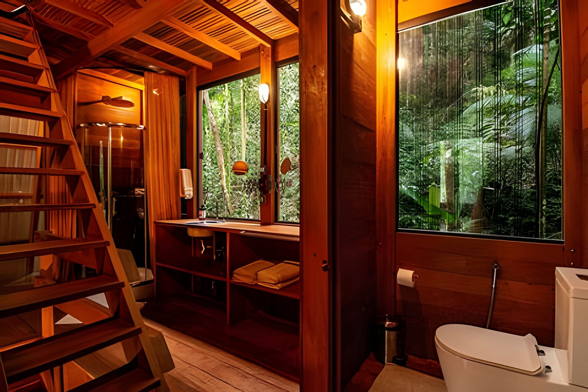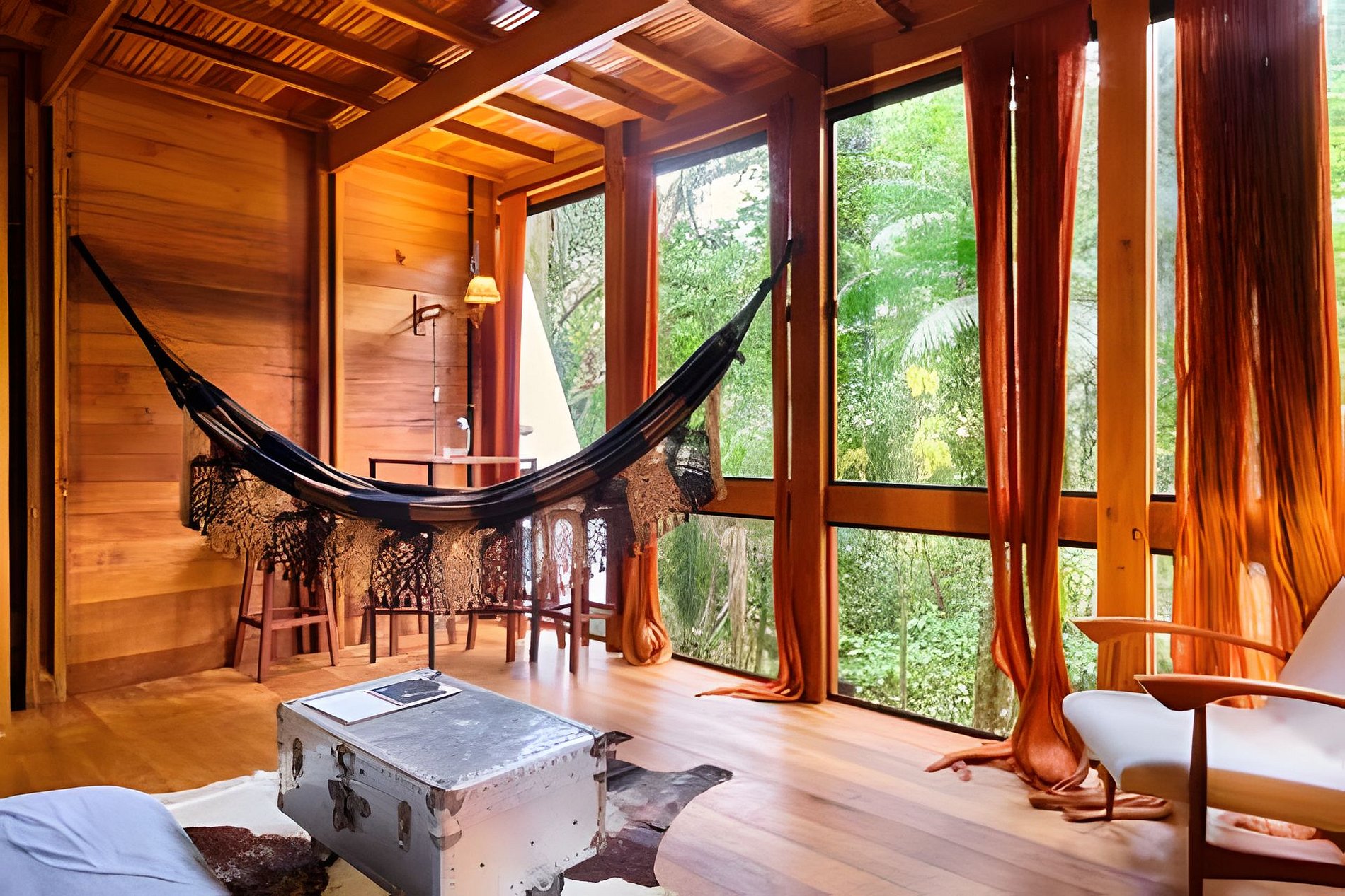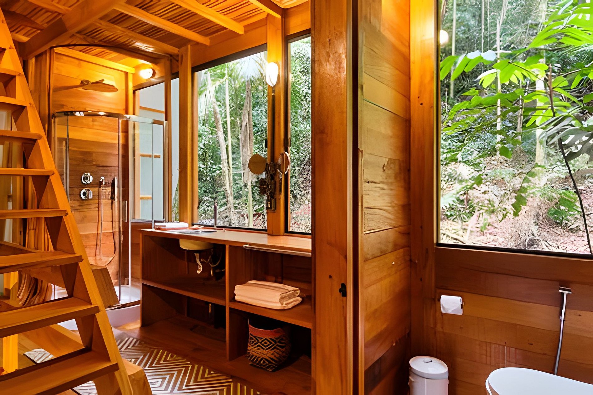 Os hóspedes terão acesso à casa inteira e a todas as instalações da Aldeia Rizoma , como academia, cachoeiras e piscinas naturais, trilhas para caminhada, alimentos orgânicos agroflorestais e sauna também (taxa da sauna não incluída).