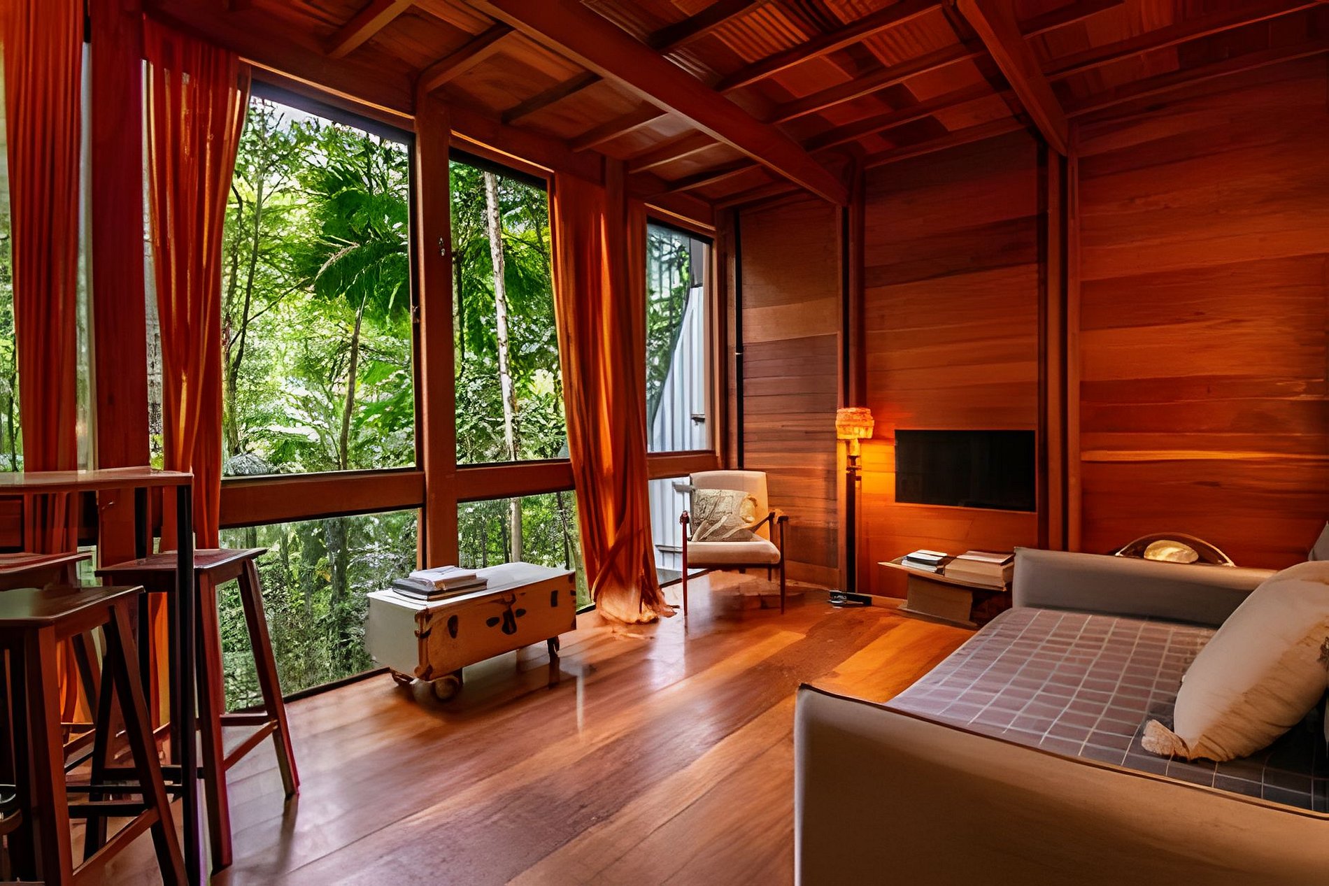 Importante: Evite atravessar o rio em dias de chuva. Crianças devem estar sempre acompanhadas. Animais de estimação são bem-vindos, mas devem permanecer na coleira. A casa está no coração da floresta tropical; a estrada pode ficar escorregadia, e veículos baixos devem estacionar em pontos superiores.