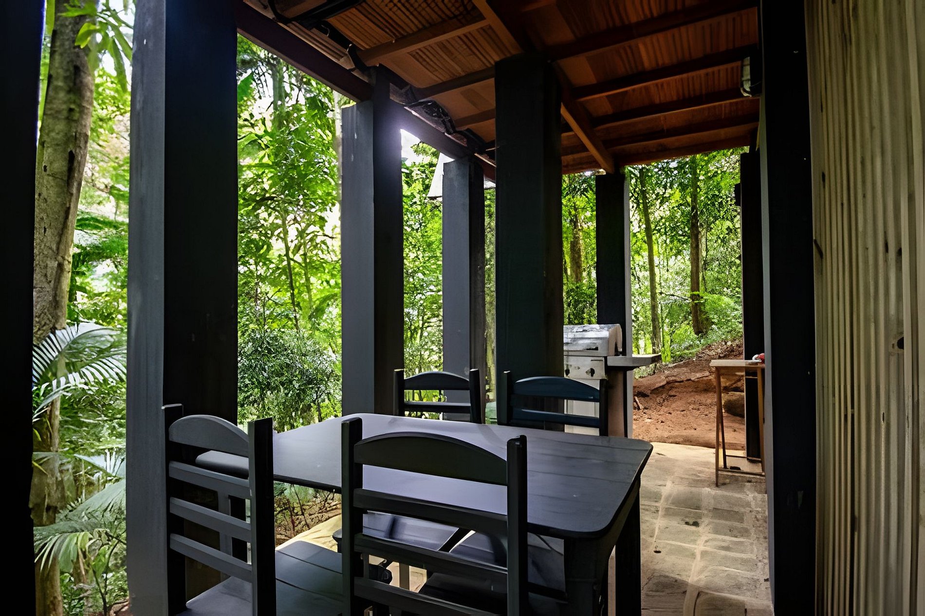 Nossa propriedade está localizada em um bairro pequeno e muito tranquilo nas montanhas de Paraty, bem na divisa com o Parque Nacional da Serra da Bocaina, uma das maiores áreas de preservação da Mata Atlântica do país. Há uma comunidade local incrível que vive ao redor da nossa propriedade e eles são sempre super acolhedores. Para comprar alimentos e suprimentos, você pode dirigir 10 minutos até um supermercado próximo. Além disso, bem ao lado do nosso portão de entrada, há um restaurante local e uma pequena loja com produtos de origem local. A uma curta distância a pé, você pode conferir o antigo "Caminho do Ouro", por onde toda a mineração e o ouro passavam a caminho de Portugal quando o Brasil ainda era uma colônia. Existem mais de 2000 espécies de aves e você provavelmente poderá avistar, a partir do deck da casa, os pássaros mais bonitos que já viu na vida. Se tiver sorte, você ainda poderá avistar macacos e outros animais silvestres.