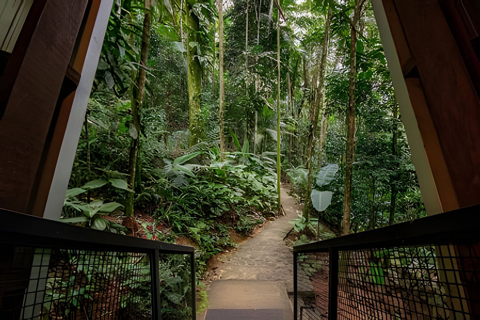 A casa Macaco é um observatório entre as árvores, imerso na floresta do condomínio ecológico Aldeia Rizoma, a 15-25 minutos do centro de Paraty, piscinas naturais e cachoeiras, trilhas para caminhada e corrida, academia, sauna, agrofloresta, além de serviços de massagem e yoga, fazem parte das experiências de bem-estar, exclusivas para os hóspedes da Aldeia Rizoma. A casa possui interiores muito confortáveis, conexão de internet de alta velocidade Starlink, tudo em uma localização muito privada.