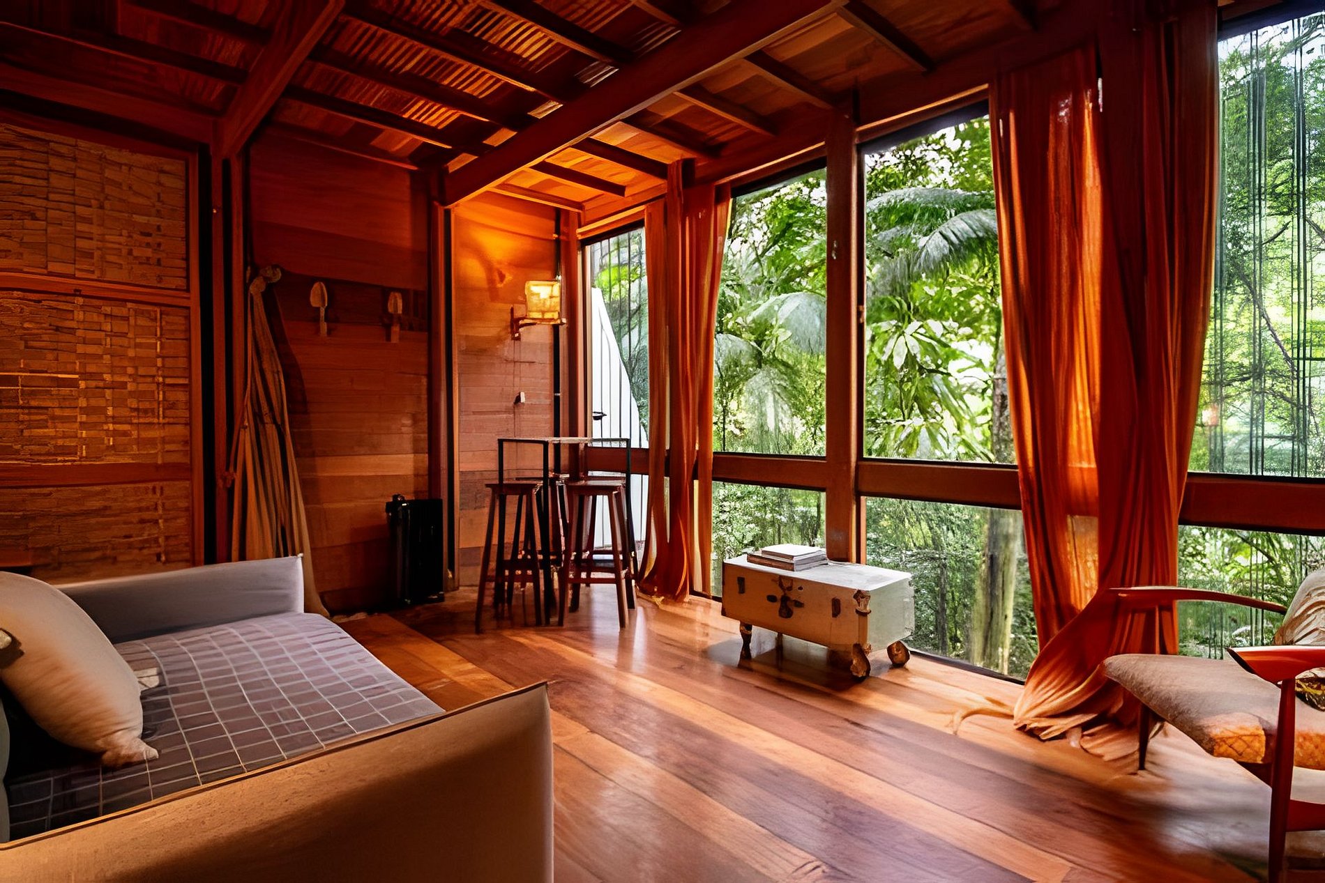 Importante: Evite atravessar o rio em dias de chuva. Crianças devem estar sempre acompanhadas. Animais de estimação são bem-vindos, mas devem permanecer na coleira. A casa está no coração da floresta tropical; a estrada pode ficar escorregadia, e veículos baixos devem estacionar em pontos superiores.