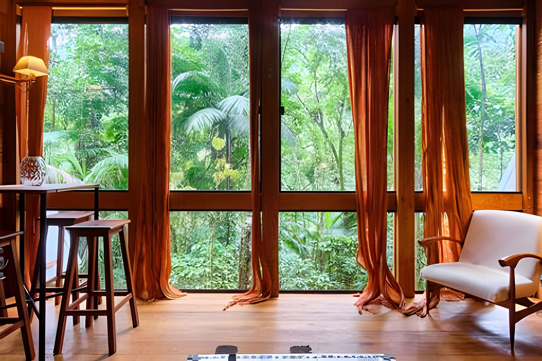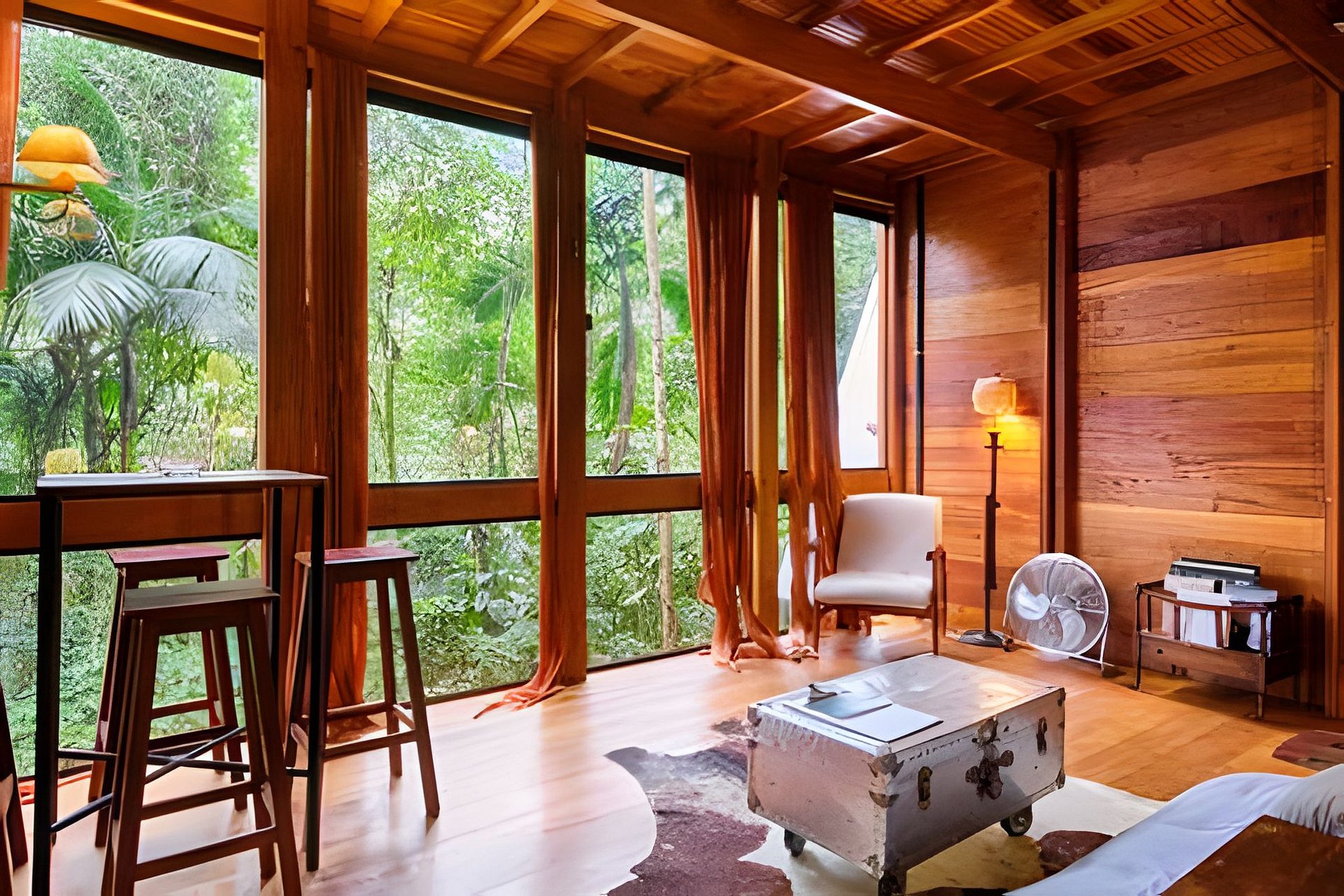 Importante: Evite atravessar o rio em dias de chuva. Crianças devem estar sempre acompanhadas. Animais de estimação são bem-vindos, mas devem permanecer na coleira. A casa está no coração da floresta tropical; a estrada pode ficar escorregadia, e veículos baixos devem estacionar em pontos superiores.