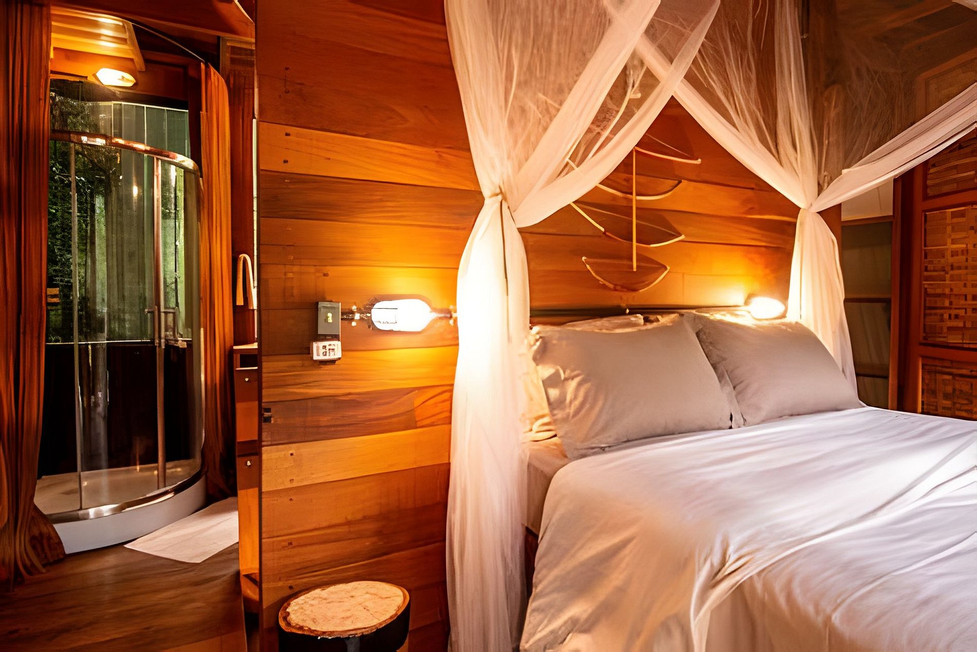Abastecidas por energia solar e conectadas à rede elétrica, contam com gerador automático. Têm chuveiros a gás, água proveniente da nascente local, internet Starlink e voltagem 220V (tomadas 110V sinalizadas).